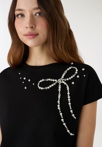 CON FIOCCO DI PERLE E STRASS - T-shirt con stampa - nero