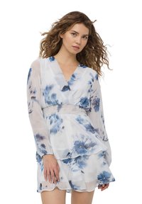 CON FIORI A BALZE E PUNTO SMOCK IN VITA - Vestito casual - celeste