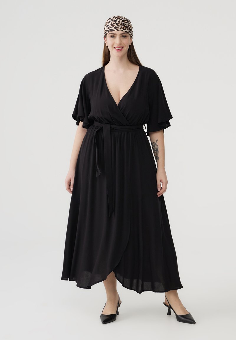 LONG WRAP WITH BELT - Vestito lungo - nero