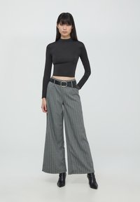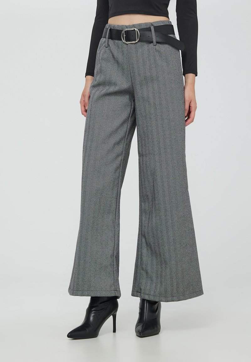 WIDE LEG A SPINA DI PESCE CON CINTURA - Pantaloni - grigio scuro