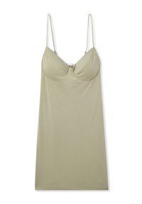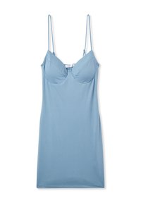 Abito nero aderente realizzato in tessuto morbido con scollatura a cuore, spalline sottili e lunghezza mini. Presenta un design senza cuciture.