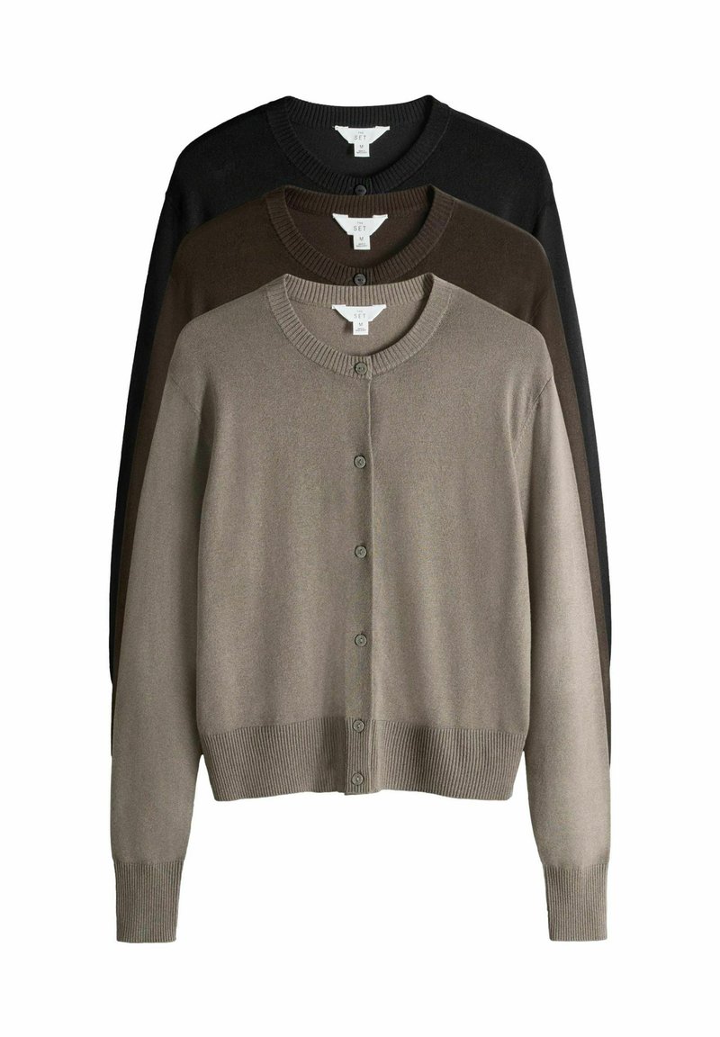 REGULAR FIT - FINE KNIT BUTTON THROUGH - Cardigan - chocolate brown/black/taupe brown