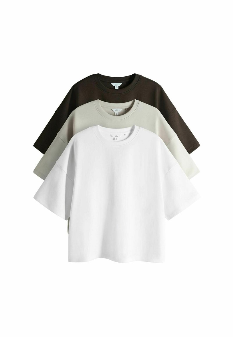 REGULAR FIT - 3 PACK - T-shirt basic - chocolate brown taupe brown white