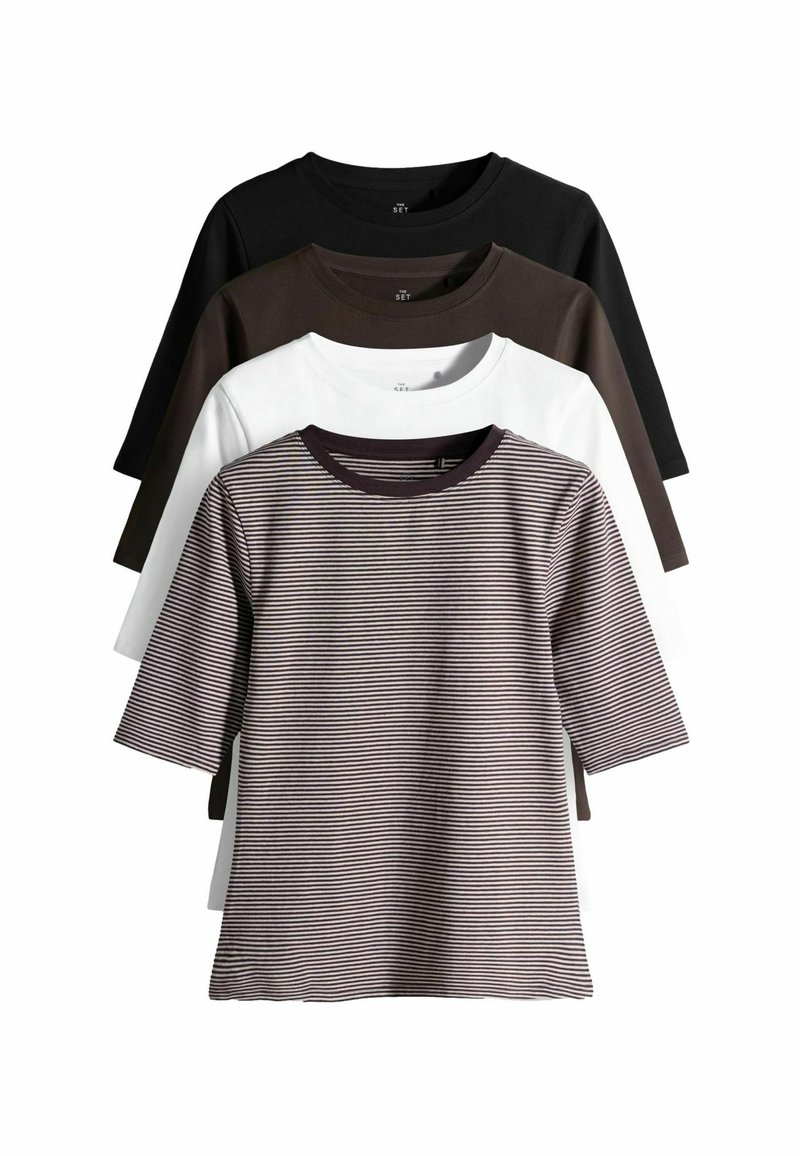 REGULAR FIT - 4 PACK CREW NECK HALF SLEEVE - T-shirt basic - black chocolate brown white stripe