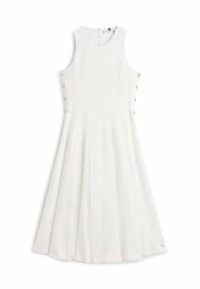Raffinato e femminile, questo elegante abito è realizzato in misto lino elasticizzato e impreziosito da bottoni dorati in rilievo che ne sottolineano il design. Caratteristiche principali • Misto lino elasticizzato • Tinto in capo • Bottoni dorati sui lati • Girocollo • Logo Tommy Hilfiger • Bandiera metallica Tommy Hilfiger sull'orlo Forma e vestibilità • Vestibilità slim • Senza maniche • Lunghezza midi • Vestibilità aderente e svasata • 120 cm dalla spalla all'orlo (basato sulla taglia S) Composizione e cura • 43% poliestere, 32% lino, 24% viscosa, 1% elastan