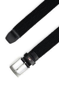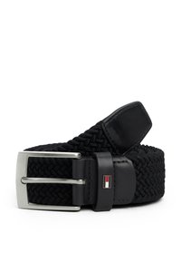 Questa cintura elasticizzata con texture intrecciata e fibbia in metallo spazzolato è ideale per aggiungere un tocco rilassato e sportivo agli outfit casual. Caratteristiche principali • Cintura elasticizzata • Design intrecciato • Fibbia quadrata in metallo spazzolato • Logo Tommy Hilfiger • Bandiera smaltata Tommy Hilfiger sul passante Forma e vestibilità • Larghezza 3,5 cm Composizione e cura • 60% poliestere, 40% elastan