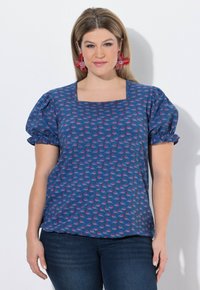BLÜTEN RÜSCHEN CARRÉ-AUSSCHNITT HALBARM - T-shirt con stampa - marine