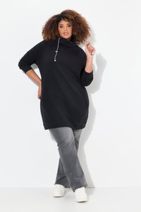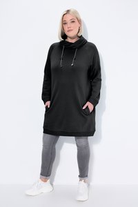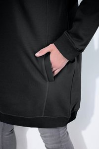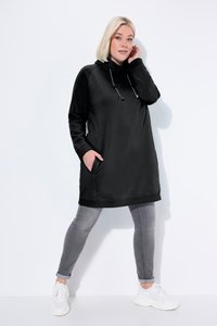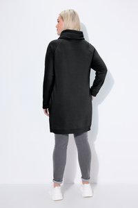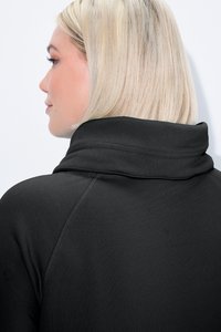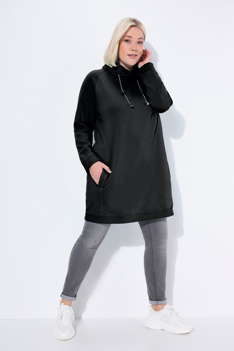 Abito felpa con ampio colletto alto e nastro per allacciatura. Tasche laterali a filetto, comode maniche lunghe raglan. Polsini a costine.