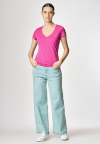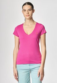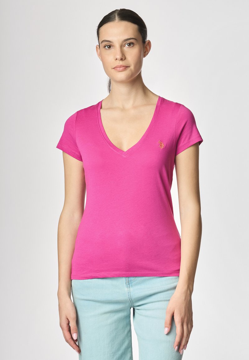 CON SCOLLO A V A MANICHE CORTE - T-shirt basic - pink