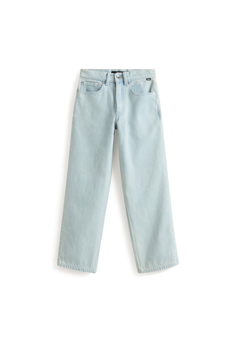 Jeans in denim azzurro chiaro con design a gamba dritta, cinque tasche e chiusura con bottoni. Tessuto morbido di peso medio.