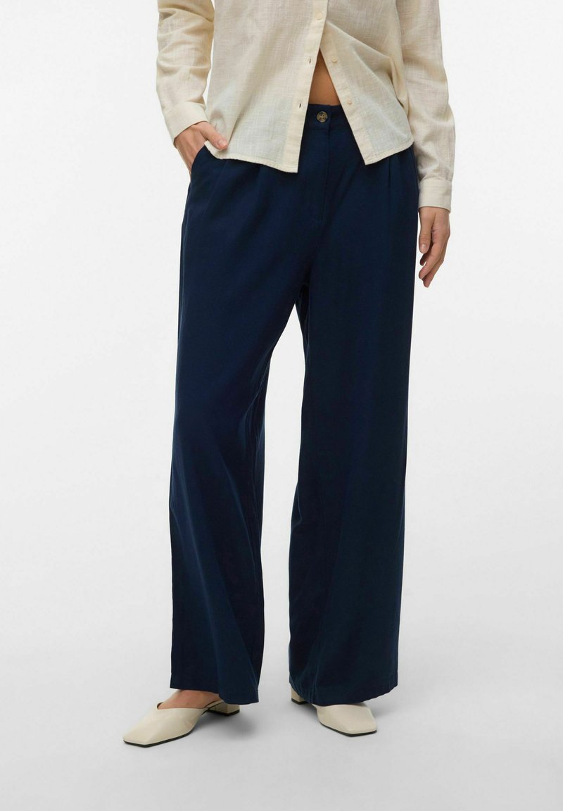 MIT WEITEM BEINSCHNITT VMMYMILO MITTLERE TAILLE - Pantaloni - navy blazer